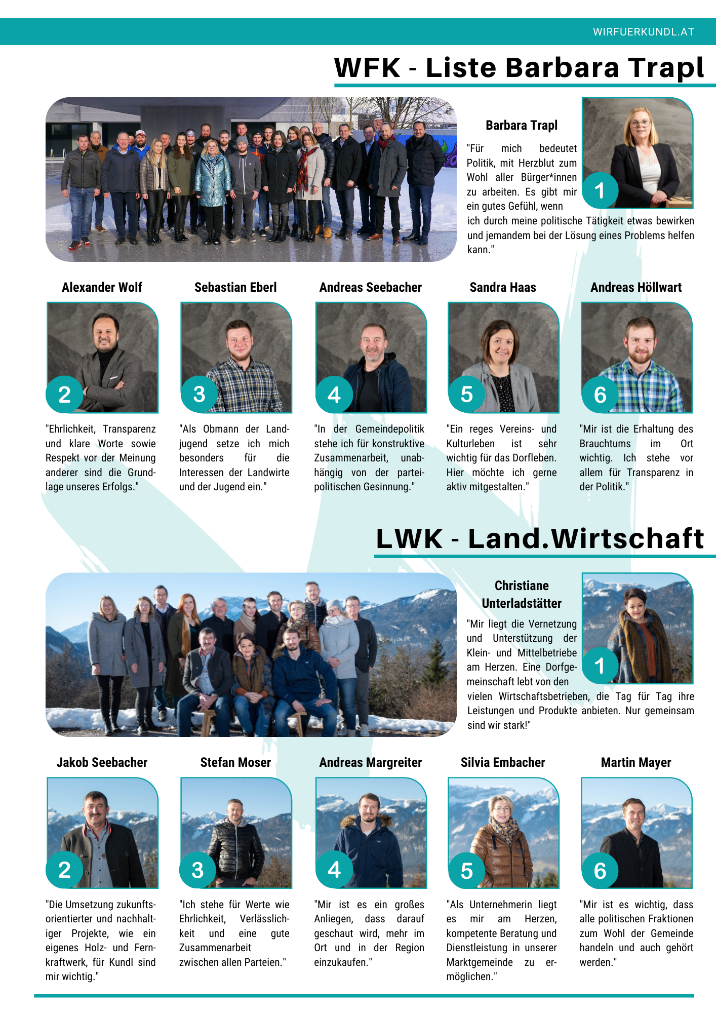 Wir haben uns immer klar und deutlich dazu bekannt, dass die Listen "Wir für Kundl - Mensch.Arbeit.Leben" und "Wir für Kundl - Land.Wirtschaft" gemeinsam mit den "Kundler Frauen" koppeln. Das ist keine Mogelpackung sondern eine Möglichkeit, die das Tiroler Wahlsystem hergibt um zu verhindern, dass Reststimmen verloren gehen. Wir finden nämlich, dass - wenn man sich schon die Mühe macht und zur Wahl geht - jede abgegebene Stimme auch tatsächlich zählen sollte. Allerdings ist es nicht okay, wenn andere Parteien kritisch mit den Fingern darauf zeigen, es jedoch selber praktizieren und darüber hinaus nicht offen dazu stehen und die Wähler_innen damit im Unklaren lassen. Schon gewusst? Die SPÖ (Team Anton Hoflacher) koppelt auch! Und zwar mit der neu gegründeten grünen Liste "Klima Zukunft Kundl". Interessantes Detail: der Obmann dieser grünen Liste ist niemand geringerer als Dr. Stephan Bertel, einer der ranghöchsten SPÖ Politiker des Landes und Stellvertreter von SPÖ Chef Dornauer...